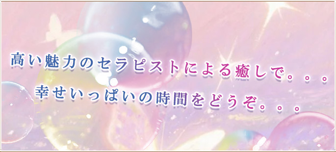 当店では、アロマオイルの効能と当店自慢のセラピストによるリンパマッサージの相乗効果による、癒しのひとときをお客様お一人お一人にお届けしております、自然で心やすらぐ優美な香りを、施術中はもちろんご帰宅お休みになってから翌日朝目覚めでまで楽しんで頂けます、どうぞゆっくりご堪能ください。